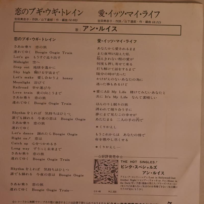 山下達郎作・編曲、吉田美奈子作詞によるアン・ルイスが1979年にリリースしたディスコ・ナンバー、7”シングル。