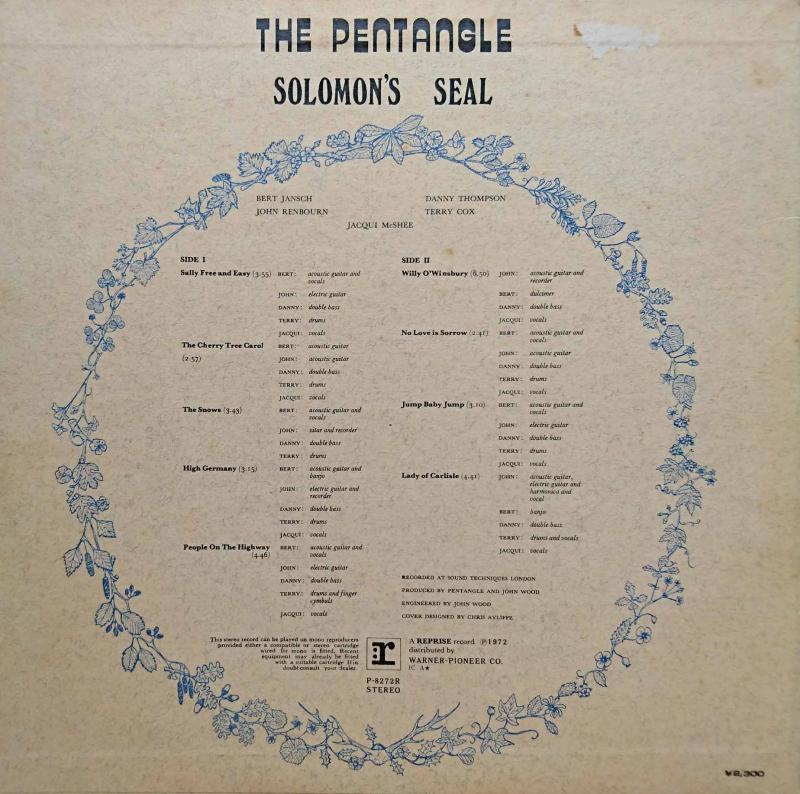 ブリティッシュ・トラッドなどを題材とし唯一無二のサウンドを作り上げたバンド:ペンタングルの6作目。メンバーは、ジャッキー・マクシー(vo)、バート・ヤンシュ(g,bj,dulcimer,vo)、ジョン・レンボーン(g,sitar,recorder,hca,vo)、ダニー・トンプソン(b)、テリー・コックス(ds,perc,vo)の5人。全9曲のうち4曲がトラッド、4曲がオリジナル、残り1曲はトラッド的な曲を作るシリル・トーニーのカヴァーとなっている。前作ではアメリカン・フォーク・ロック的な面を見せたが、本作では全面的にブリティッシュ・トラッド的となっている。初期の様なジャズ・イディオムの音を聞かせながらも、リコーダーやダルシマーを使った「Willy O Winsbury(ウィンズベリーのウィリー)」などでは土着性を感じさせる。方向性の違う5人が葛藤しながらたどり着いた結論として、本作は記憶される事になった。この後解散した彼らは、それぞれの道を歩むことになる。アルバム邦題『ソロモンの封印』