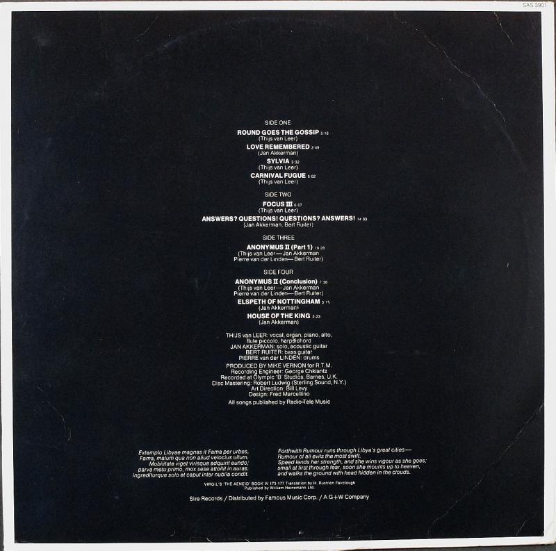 オランダを代表するプログレッシブ・ロックバンド、フォーカスの3rdアルバム。名曲「シルヴィア」を収録。Jan Akkerman (g) / Thijs Van Leer (org,p,fl,vo) / Bert Ruiter (b) / Pierre Van Der Linden (ds)