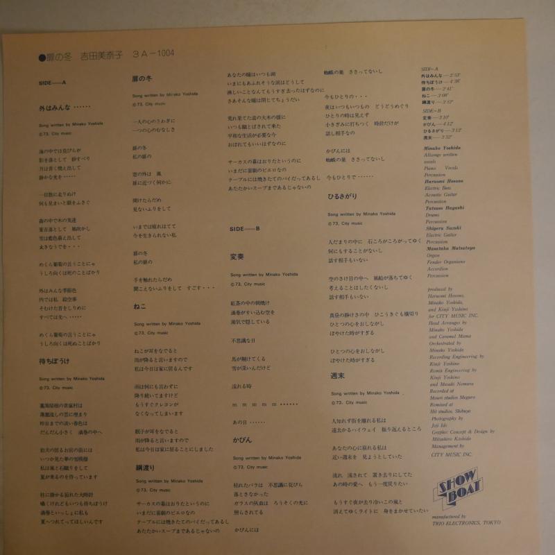 1973年に細野晴臣のプロデュースによりリリースした吉田美奈子のデビュー・アルバム。キャラメル・ママ(細野晴臣、松任谷正隆、鈴木茂、林立夫)の面々が参加サポート。