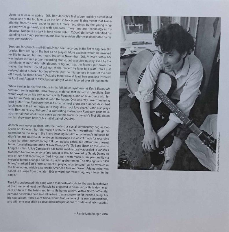 ペンタングル<PENTANGLE>に在籍したギターの名手:バート・ヤンシュのソロ2作目。フィンガー・ピッキング・ギターの妙技を存分に聞かせ、彼がデイヴィ・グラハム~ウイズ・ジョーンズの流れを汲むギタリストであることがよく分かる。自作曲中心だが、「Lucky Thirteen」はジョン・レンバーンの曲で、その曲と「My Lover」の2曲ではレンバーンのギターが加わっており、最後のトラッド曲「900 Miles」でヤンシュはバンジョーを演奏している。また、マイナー調の「Anti Apartheid(人種差別はやめよう)」などシンガー・ソングライターとしての資質を示している曲もある。日本では『自由と魂』とのアルバム・タイトルが付けられた